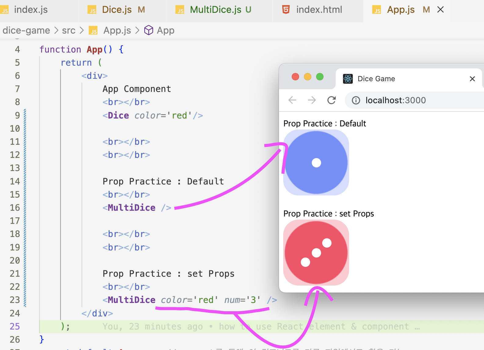 function MultiDice({color = 'blue', num = 1}) { // props 내 구체적인 속성명 사용 & 기본값 제공
