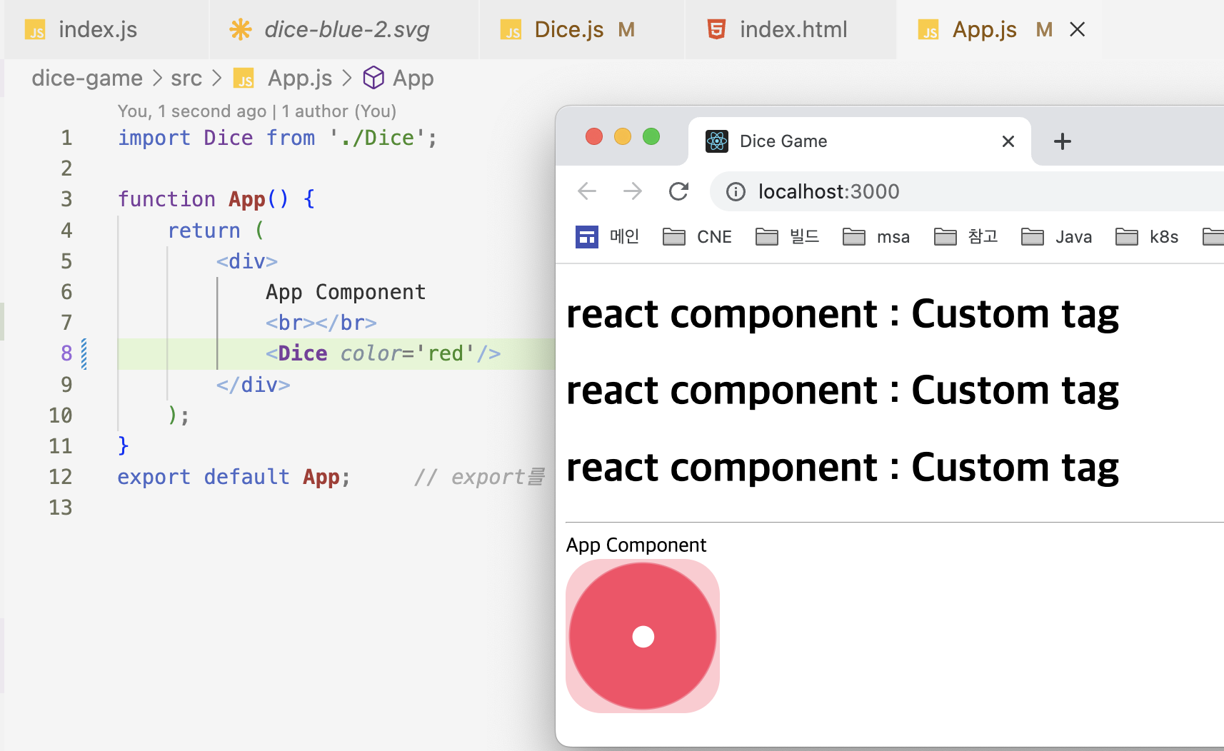 React Element를 이용하여 커스텀 태그를 만들수도 있는데, 이를 React Component라고 한다.