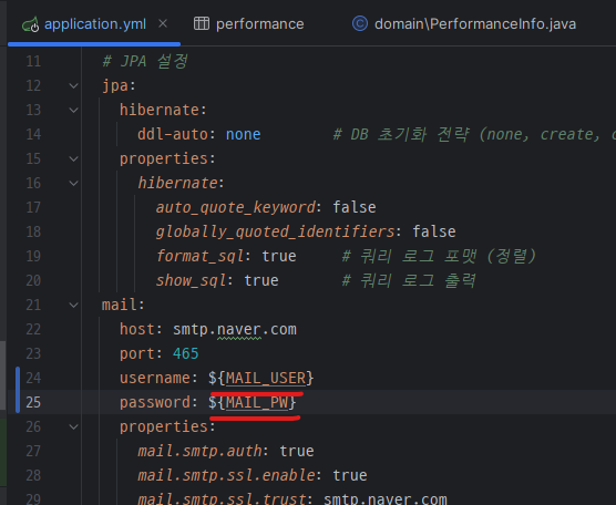 코드에 계정 정보가 노출되지 않도록 IDE 단에서 설정